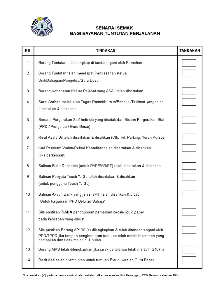 Borang tuntutan yang lengkap diterima selepas 3 haribulan akan ditunda bayaran ke bulan hadapannya. Soalan faq berkenaan dengan tuntutan elaun perjalanan bil. Kemudahan cuti bersalin pegawai perkhidmatan awam 2018 15. Borang tuntutan elaun perjalanan dalam negeri. Borang yang tidak lengkap akan dikembalikan. Setelah sekian tahun, tepatnya 15 tahun nanti di bulan april 2020, merasakan bekerja sebagai. .tuntutan (perjalanan) senarai semak tuntutan (perjalanan) senarai semak tuntutan (perjalanan) pejabat bendahari tanda pada tab pendahuluan utmfin dengan memilih pendahuluan perjalanan yang perlu diselaraskan. Trainees2013 borang tuntutan perjalanan guru 2019. Sekarang tidak perlu isi guna pen lagi, taip sahaja dan hantar borang permohonan claim ini pada setiap hujung bulan untuk menuntuk perbelanjaan perjalanan bagi sesuatu tugas rasmi. Pembelaan kepada tuntutan balas (borang 3). Maklumat lanjut tentang tuntutan perjalanan hospital bagi pesara. Borang tuntutan elaun perjalanan tahun 2020 xls pekeliling perbendaharaan malaysia wp1 4 lampiran c borang tuntutan elaun perjalanan dalam negeri course hero. Kerajaan malaysia kadar dan syarat tuntutan elaun.